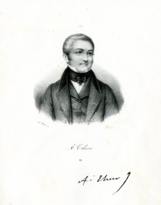 Dans son testament daté du 19 juin 1839, le duc Victor de Broglie écrivait de son lien avec François Guizot : « Je regarde notre longue amitié comme l’un des biens les plus précieux que Dieu m’ait accordé », ce qui était la plus grande expression d’émotion dont était capable cette personnalité d’une extrême pudeur. Cette amitié, qui remontait à plus de vingt années, devait durer trente ans encore, jusqu’à la mort de Broglie, le 25 janvier 1870. C’est alors que Guizot découvrit cette phrase, que le fils aîné du défunt, Albert, lui communiqua deux semaines plus tard. Et c’est aussi cette phrase que Guizot plaça en tête de sa biographie du duc de Broglie, l’un de ses tout derniers ouvrages, paru en 1872. A ses proches, il écrivait comme en écho : « Je perds mon plus ancien, mon meilleur et mon plus rare ami. »  Rien, à l’origine, ne semblait devoir rapprocher à ce degré d’intimité le grand seigneur catholique, issu d’une lignée de maréchaux de France et élevé à Paris, et le bourgeois protestant sans ancêtres, éduqué à Genève. Leurs tempéraments même étaient presque à l’opposé, le premier introverti, dépourvu d’éloquence, d’abord rugueux et parfois hautain, entêté dans ses idées et détestant le trouble et l’imprévu, le second infiniment sociable, orateur infatigable, passant sans effort apparent d’une activité à l’autre, et poussé par une ambition qui faisait presque défaut à l’autre. Sauf qu’ils avaient le même âge – deux ans de plus pour Broglie – et que l’histoire avait passé sur eux sa toise : le prince Victor de Broglie, député libéral à la Constituante puis chef d’état-major de l’armée du Rhin, fut guillotiné en juin 1794, à 37 ans, deux mois après André Guizot. Leurs fils, orphelins de la Terreur, ne renièrent pourtant jamais les grands principes de la Révolution, surtout  Broglie, placé dès 1795 au contact de son beau-père Voyer d’Argenson, libéral de plus en plus engagé à gauche. Sous l’Empire, à peine se sont-ils côtoyés, alors qu’ils fréquentaient la même société libérale. En 1809, Victor de Broglie entra au Conseil d’État, et partit bientôt pour des missions qui le menèrent à travers toute l’Europe, de l’Espagne à la Pologne, et la première Elisabeth Louise Vigée Le BRUN, Madame de Staël et sa fille, huile sur toile, Château de Coppet, Suisse. Restauration le conduisit à la chambre des pairs. Son premier exploit public fut, en décembre 1815, de réfuter publiquement à la chambre l’accusation de crime de haute trahison imputé au maréchal Ney, ce qui ne sauva pas ce dernier, mais valut au jeune pair une grande réputation d’indépendance d’esprit. En février 1816, contre l’avis de sa famille qui y voyait une mésalliance, il épousa pour son plus grand bonheur la fille de Germaine de Staël, Albertine. L’entrée dans cette famille suisse, protestante et libérale le rapprochait de Guizot. Tous deux nommés conseillers d’État en service ordinaire en 1817, c’est de cette année-là que date leur vraie rencontre, mettant leurs capacités législatives et juridiques  pour Broglie, politiques, administratives et rédactionnelles pour Guizot, au service des ministères libéraux, de Richelieu à Decazes. En 1818, Broglie rejoignait le groupe des « doctrinaires » dont Royer-Collard et Hercule de Serre étaient les figures de proue, et Guizot l’agent actif. À partir de là, écrit Guizot, « plus nous vécûmes l’un près de l’autre, plus nous devînmes d’événement en événement, je pourrais dire de jour en jour, et presque sans nous l’exprimer, de plus sérieux et plus intimes amis. »  Cette amitié, qui autorisait entre eux la plus totale franchise, était née de la politique, et devait s’y nourrir jusqu’en 1848. En voici les principales étapes : opposition aux cabinets ultras de 1820 à 1828 ; appartenance commune à la Société de la morale chrétienne qu’ils président successivement ; rejet des ordonnances de Charles X ; acceptation ferme et sans enthousiasme de la révolution de juillet 1830, qui les fait entrer tous deux au gouvernement, Broglie à l’Instruction publique et Guizot à l’Intérieur ; soutien actif à la politique conservatrice ; piliers avec DELPAR. Adolphe THIERS (1797-1877). Lithographie.Thiers du cabinet du 11 octobre 1832, dont Broglie, ministre des Affaires étrangères, se retire en avril 1834 à la suite d’un vote hostile et inattendu concernant une indemnité à verser aux États-Unis ; présidence du Conseil du même, toujours  avec Guizot, de mars 1835 à février 1836. Jamais Broglie n’accepta de figurer dans un ministère dont Guizot ne serait pas, certainement par amitié, aussi parce qu’il avait besoin de l’ascendant qu’exerçait son ami sur les assemblées parlementaires. L’inverse n’était pas vrai mais, sans parfois lui ménager les conseils et les critiques dans des lettres où chaque mot était pesé, Broglie n’eut jamais un geste ni une parole hostile à Guizot, alors même qu’il ne siégeait plus au gouvernement durant les douze dernières années du régime, -« il tient au pouvoir, écrira Sainte-Beuve, aussi peu qu’à la popularité. » Mieux, lorsque Guizot sollicita son aide dans ses relations avec l’Angleterre, dont Broglie était un grand admirateur comme Guizot et un parfait connaisseur, il accepta en 1845 d’aller négocier à Londres sur l’épineux sujet du droit de visite relatif à la traite négrière, puis d’y devenir ambassadeur en juin 1847. C’est là que le trouva la révolution de février.